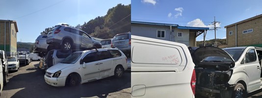 ③ 차량 상태 : 외관에 큰 파손이 없고, 정상 운행이 가능해야 합니다.(차량 결함이 있다고 판단되면 파주 조기폐차 접수 전에 폐차장에 알려주시면 내부에 있는 부품을 재활용해서 수리할 수 있습니다.)